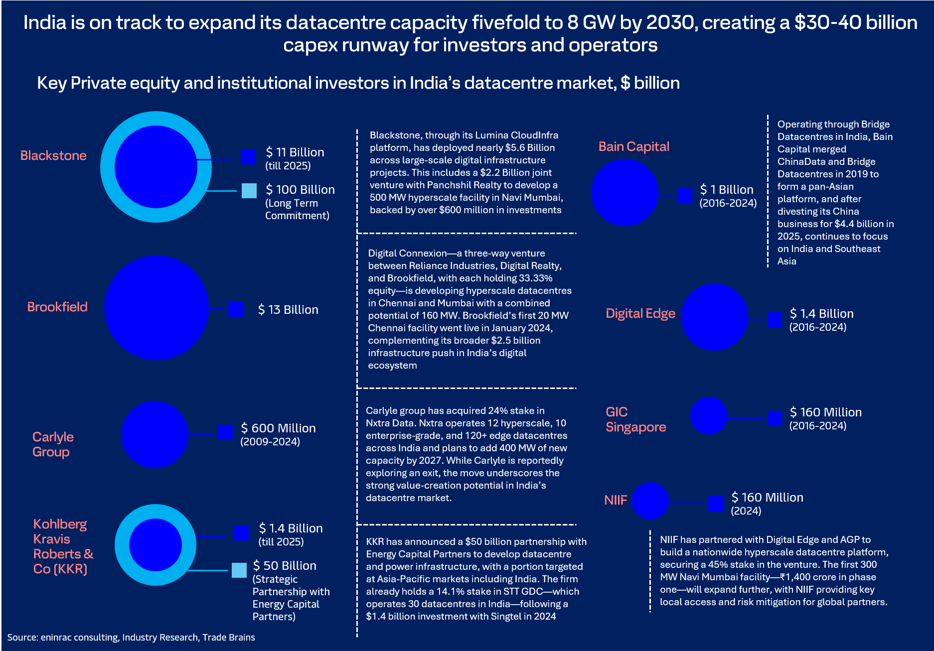 Against this backdrop, global private equity investors are sharply increasing their commitments to India’s digital infrastructure sector, attracted by resilient, data-linked returns and the nation’s aspiration to build a USD 1 trillion digital economy by 2030. Capital deployment is intensifying across edge facilities, AI-ready hyperscale campuses, and scalable fibre networks. Since 2020, more than USD 15 billion has already been committed and deployed, with a further USD 20–25 billion expected by decade-end. This momentum positions India as one of the fastest-growing and most strategically significant digital infrastructure markets globally.