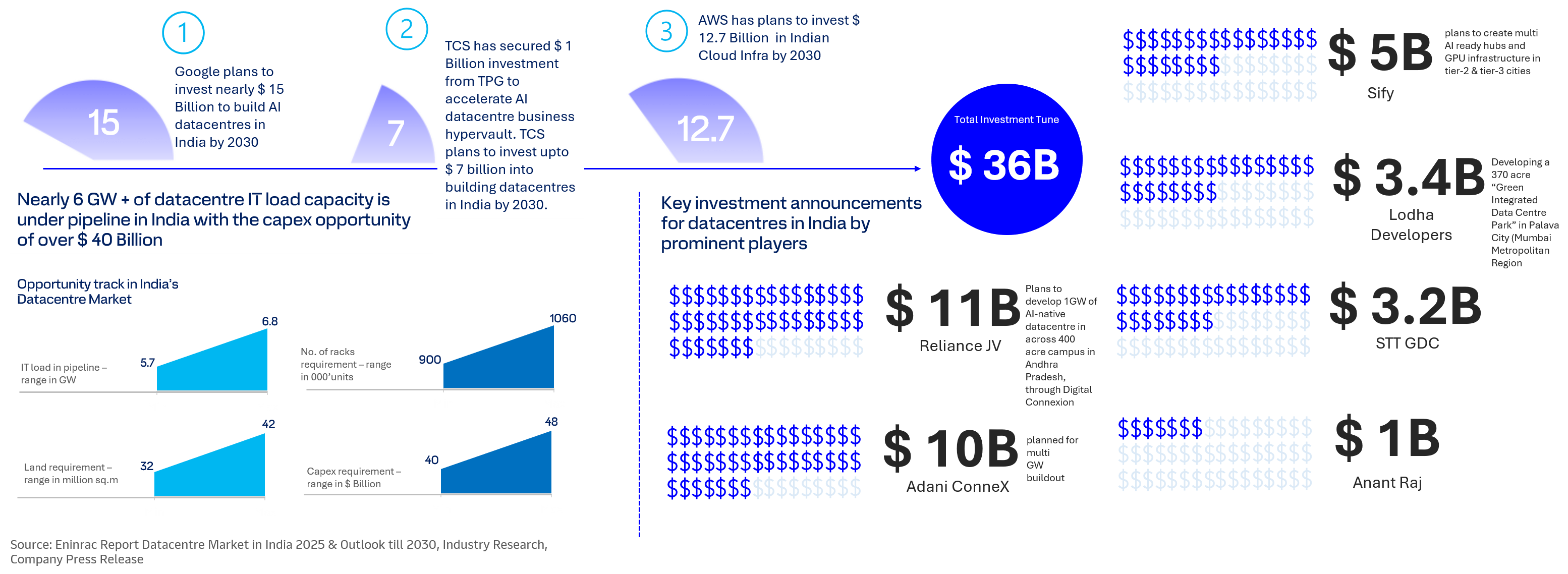 Investment plans rolled out by Google, Tata & AWS in India for datacentre expansion by 2030